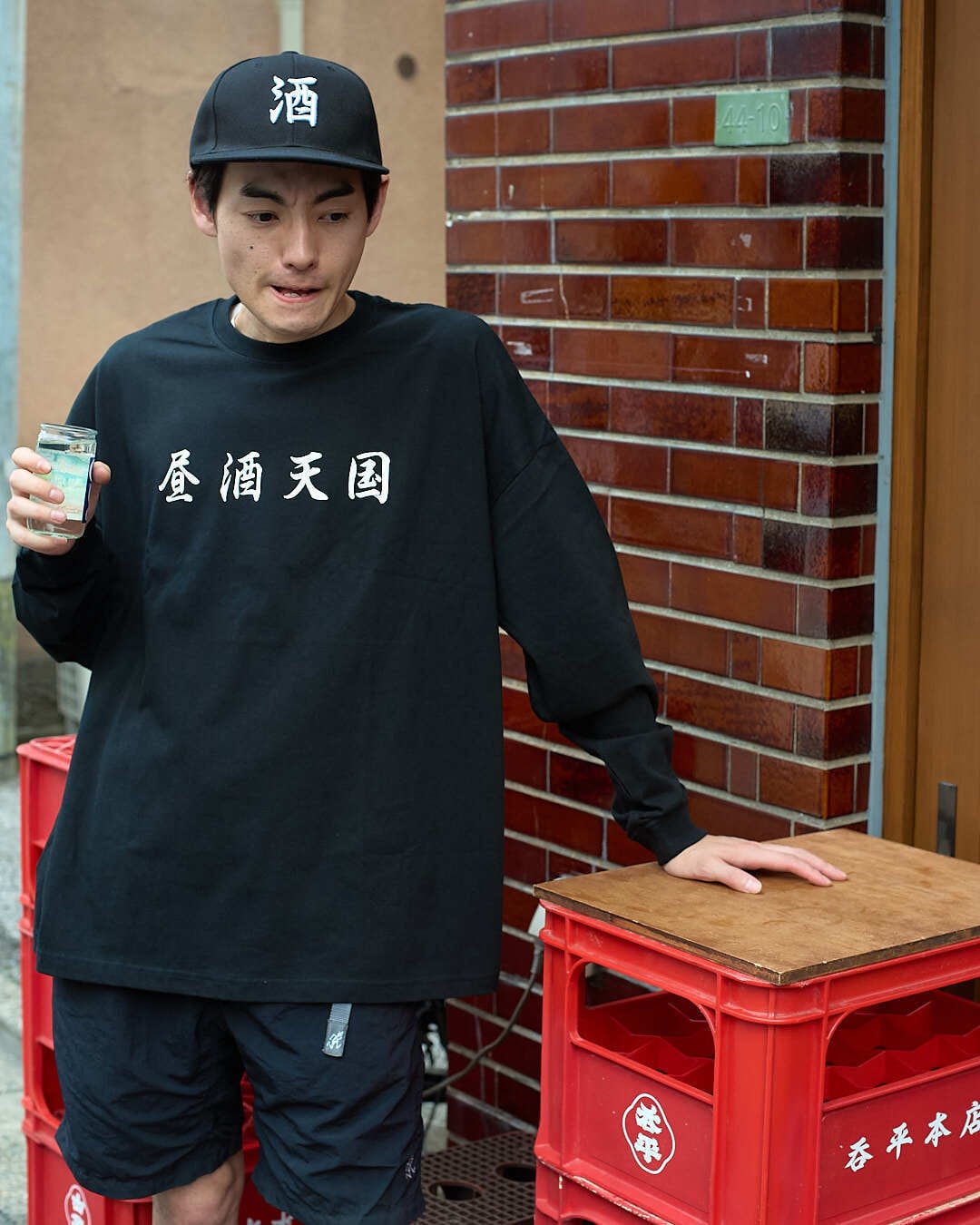 NONBEE×呑平本店 “昼酒天国” LONG SLEEVE TEE black/white